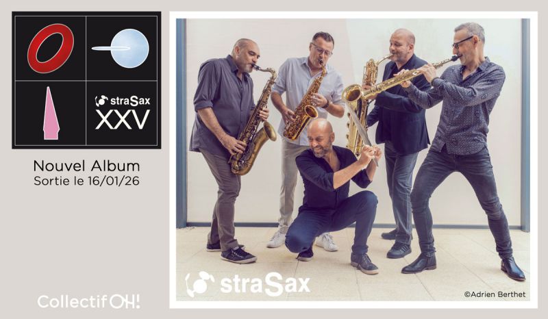 Fondé en 1998, straSax s’est imposé au fil des années comme une véritable institution de la scène jazz hexagonale. Si à l’occasion de ses 20 ans le quintet s’était engagé dans un ambitieux dialogue avec un orchestre d’harmonie arrangé par Bernard Struber, il revient aujourd’hui à ses fondamentaux pour célébrer son quart de siècle d’existence. Fidèle à son orchestration atypique, articulant à la matière contrapuntique d’un quatuor de saxophones la pulse d’une batterie résolument jazz, straSax offre ici une nouvelle déclinaison de sa musique raffinée, mêlant avec finesse tradition afro-américaine et musique occidentale contemporaine.